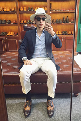 On the one hand, English style honors the precision of details such as a clean back, a sharp shoulder, a well-done lapel, accurately stitched hem-line. On the other hand, Italian Style focuses more on the overall shape and silhouette of the Garment. Italian Suits are often slimmer at the waist, their structures are also made very light-weight, these qualities make them beautiful especially when wearers move. The jacket's waist sitting close to the wearer's body while the hemlines gliding through the air following each walking steps give off an overall impression of freedom and energy. The color and pattern of fabric used to Italian Suits is also more lively and colorful then English suit.